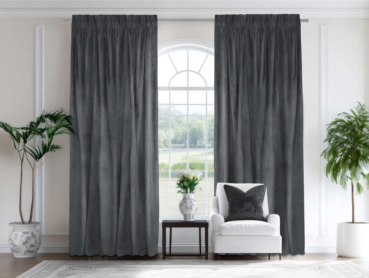 Hladká voálová látka je oblíbenou volbou pro svoji schopnost dodat každému prostoru nádech sofistikovanosti. Závěsy mají 4 cm dekorativní lemování nad nabírací páskou, lemované boky a spodek zatížený olovem, což zajišťuje bezvadnou kombinaci látky pro stylový vzhled.