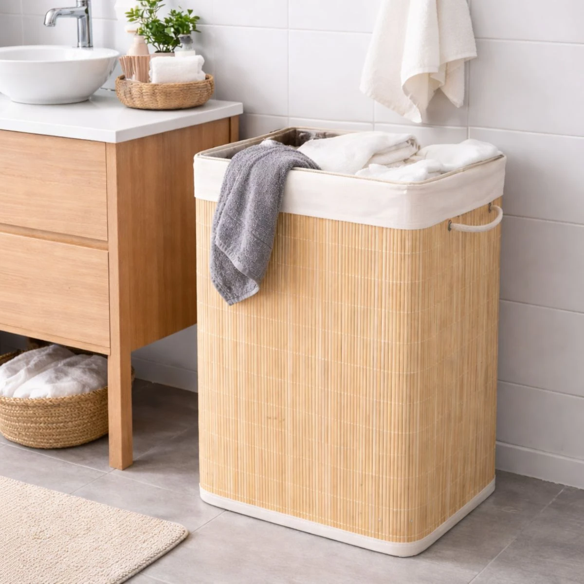 ✔️ Koupelna: praktické místo pro uložení prádla určeného k praní, pomáhá udržet pořádek a estetiku