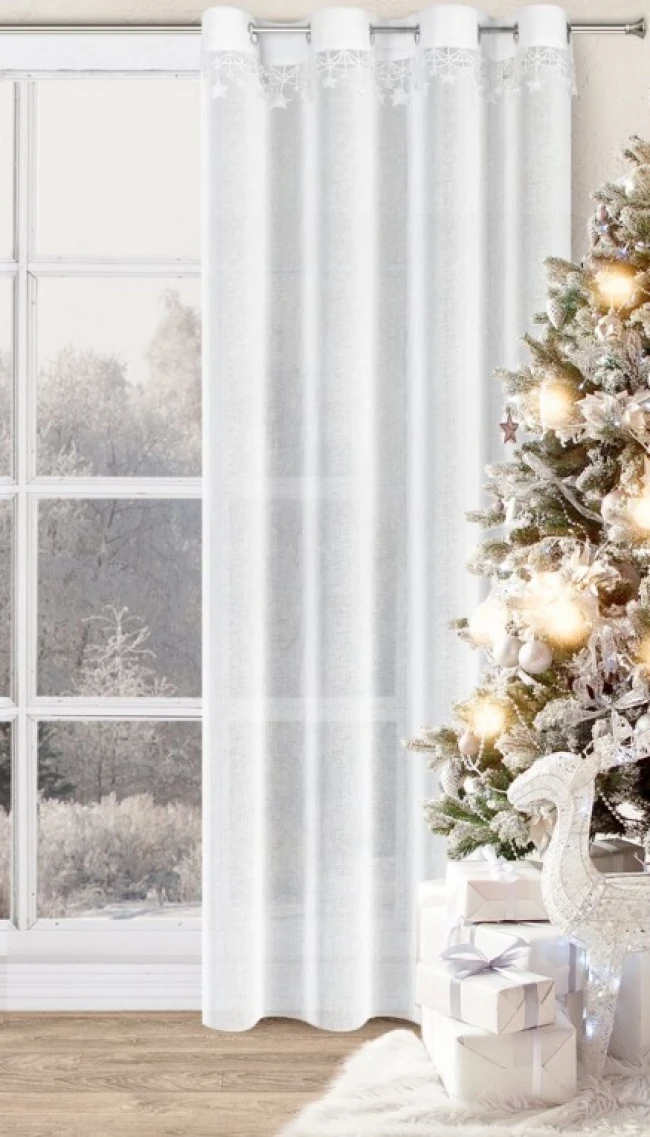 - Záclona s elegantním vánočním potiskem, která přitahuje pozornost a vytváří výjimečnou atmosféru