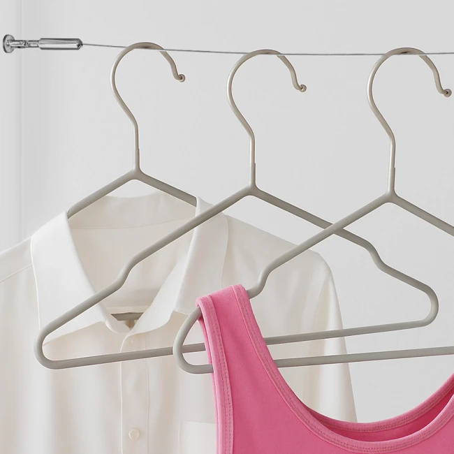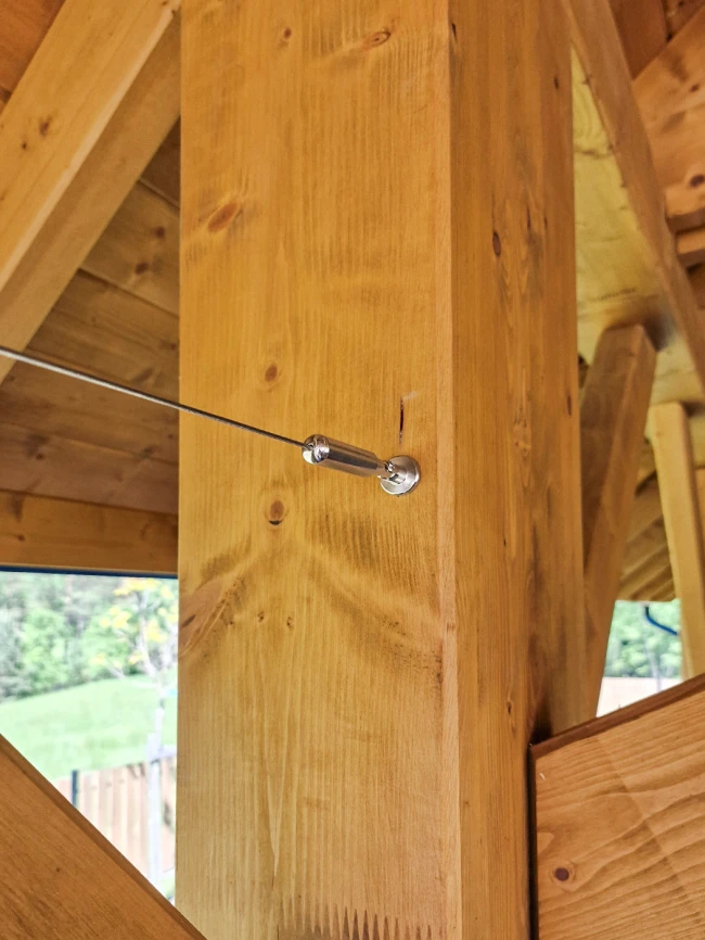 - Závitový napínací systém zajišťuje správné napnutí lana a neohýbá se pod tlakem těžkých závěsů.