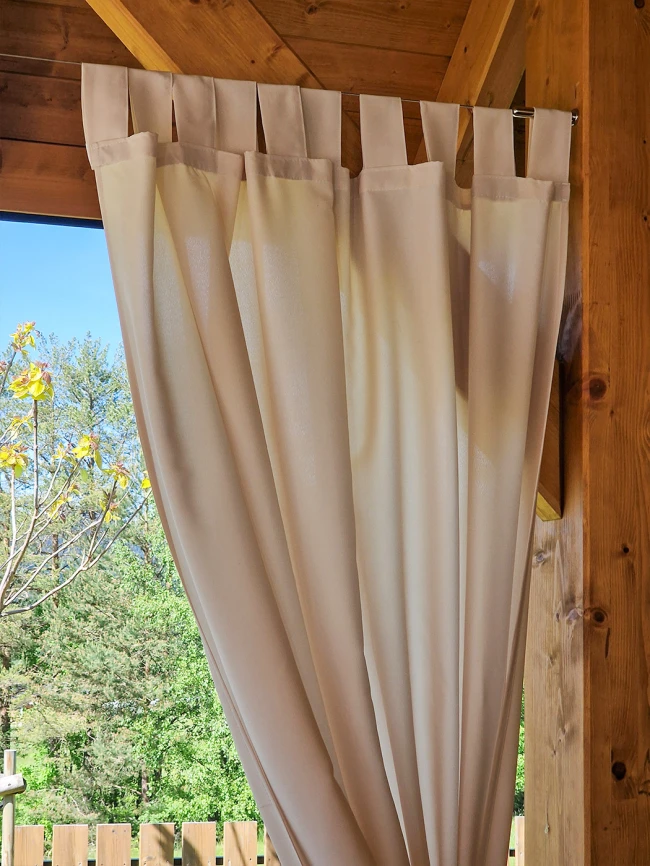 - Kroužek s háčkem umožňuje zavěsit záclony na očka nebo pomocí pásky (10 ks na každých 100 cm záclonové tyče)