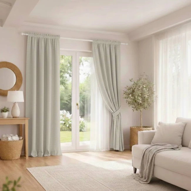 Závěs má hustě šitý materiál, který účinně blokuje světlo. To umožňuje zatemnit místnost i při intenzivním slunečním světle.