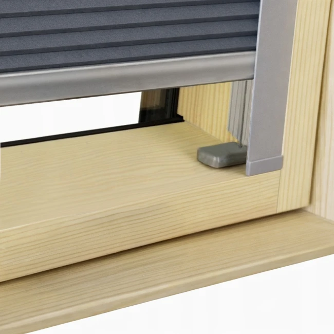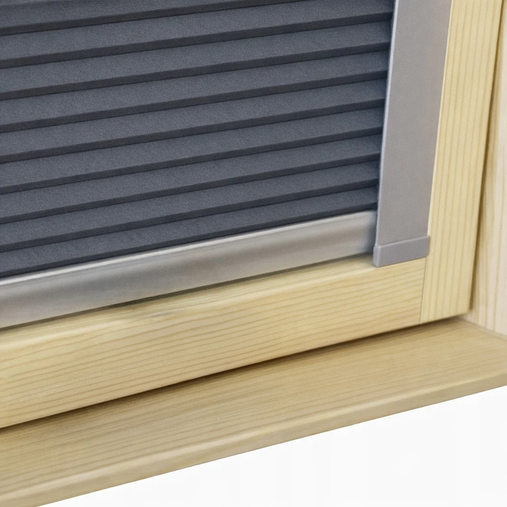 • Plisé má boční vedení v barvě profilu, která zajišťují, světlo neproniká po jeho stranách a zajišťuje záhyby proti prověšení