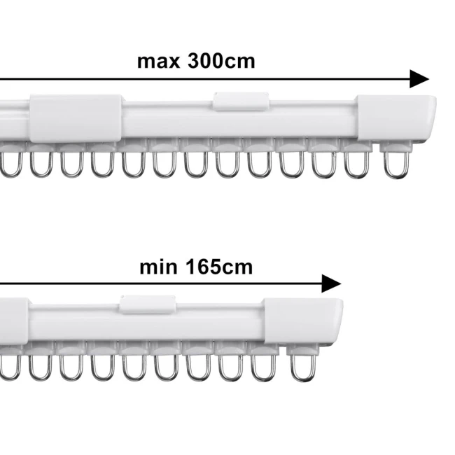 - Výsuvné prvky s kolečky a kovovými háčky - zaručují plynulé posouvání záclon a závěsů